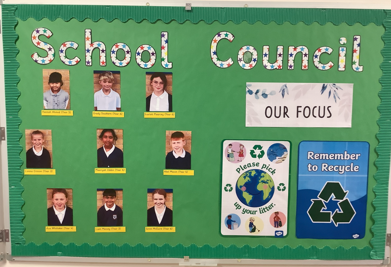Please find our school council information board outside the main office. This is where you can see our school council members and the focus area that they are aiming to improve for our school.